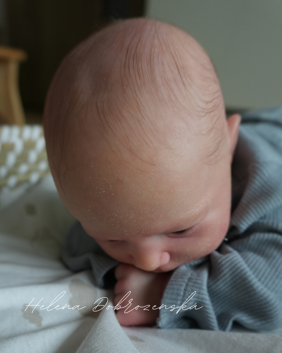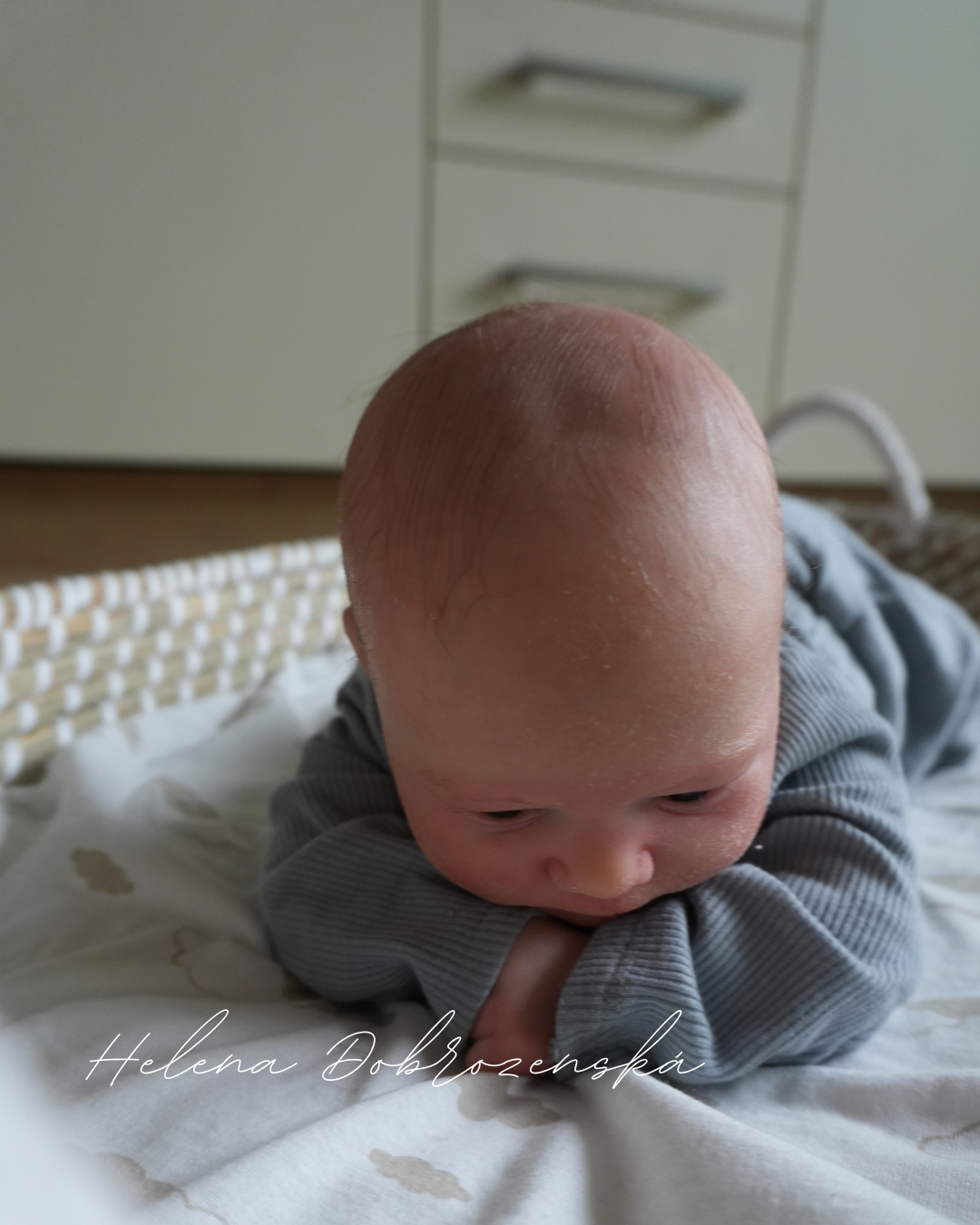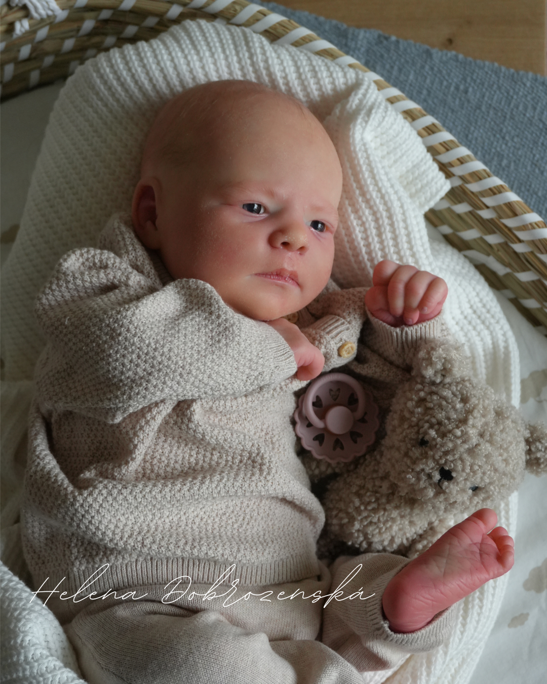 Každý detail byl tvořen s maximální pozorností – od realisticky vystínované pleti s jemným mramorováním a žilkováním, přes něžné blushingy až po drobné nuance, které dělají z miminka reborňátko skoro jako živé.